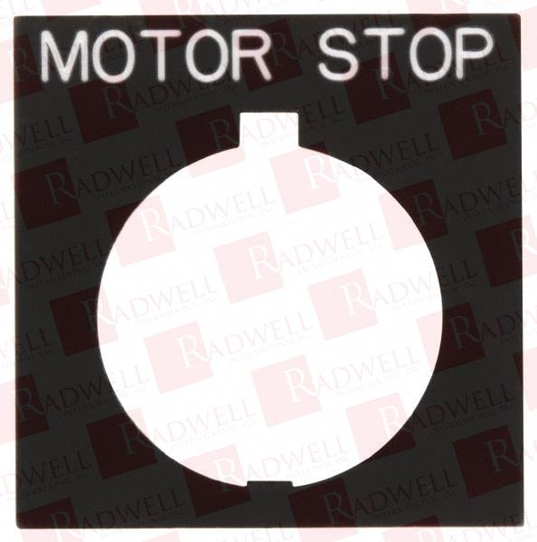 LEGEND PLATE MARKING "MOTOR STOP". FOR USE WITH 30MM PILOT DEVICES.