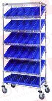 (30) 17-7/8"L X 6-5/8"W X 4"H BLUE BINS (QSB104) & (4) 5" SWIVEL POLYURETHANE CASTERS (2 WITH BRAKES)