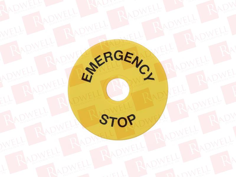 LEGEND PLATE MARKING "EMERGENCY STOP". FOR USE WITH 22MM PILOT DEVICES.