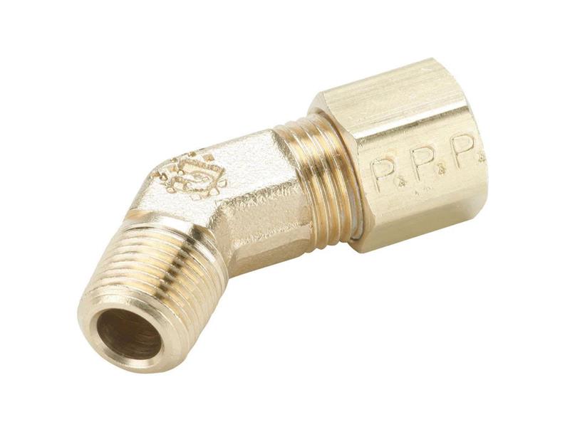 1/2" TUBE OD X 3/8-18 NPTF BRASS COMPRESSION TUBE MALE 45° ELBOW COMP X MNPT ENDS
