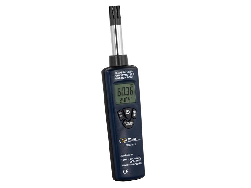 PCE-555 IS A COMBINATION DIGITAL HYGROMETER AND DIGITAL THERMOMETER USED TO MEASURE RELATIVE HUMIDITY OR AIR HUMIDITY AS WELL AS AIR TEMPERATURE